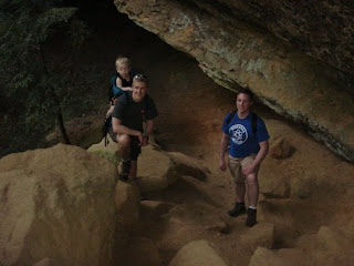 The guys had a tougher hike because they shared the job of caring Caleb on their backs
